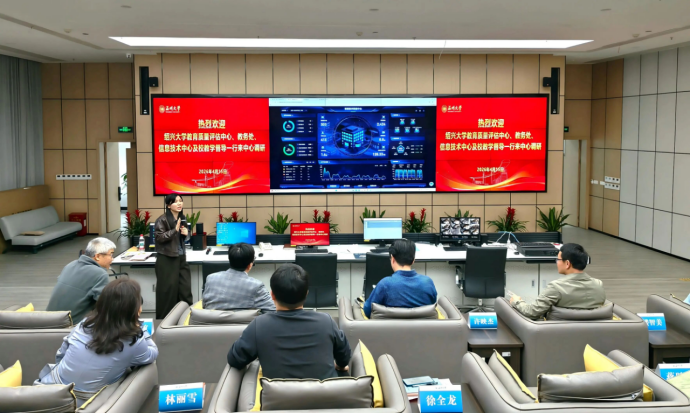 在温州大学智慧校园展示中心,对方现场演示智慧教学平台,重点展示无感巡课、AI课堂评价、多维度教学质量分析等功能应用与实践成效。双方围绕AI赋能教学质量监控的实施方式、评价指标、优势与改进方向等内容展开研讨,共同探索数字化背景下教学质量保障的创新路径。
